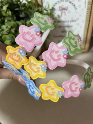 Tiara com aplicações de estrela no acrílico