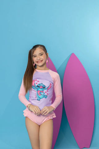 Biquini Manga Longa - Stitch E Angel Rosinha