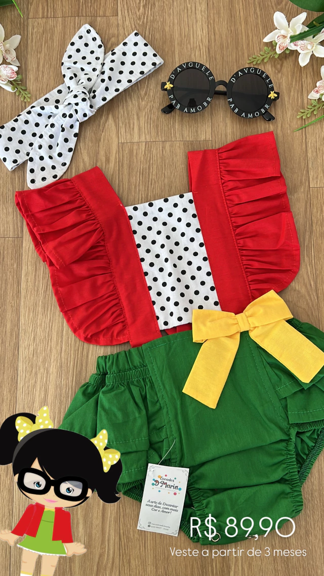 Jardineira Bunda Rica confeccionada em tecido 100% algodão com alças ajustáveis nas Costas.