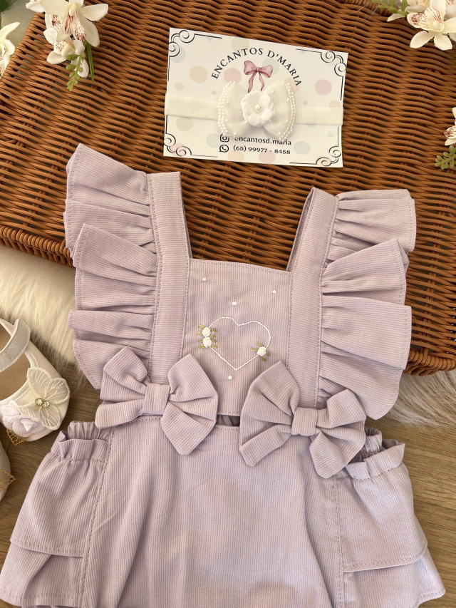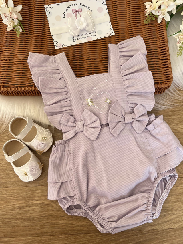 Jardineira Bunda Rica confeccionada em tecido 100% algodão com alças ajustáveis. Veste bem de 6 Meses até 12 Meses (alças ajustam ao comprimento do bebê).