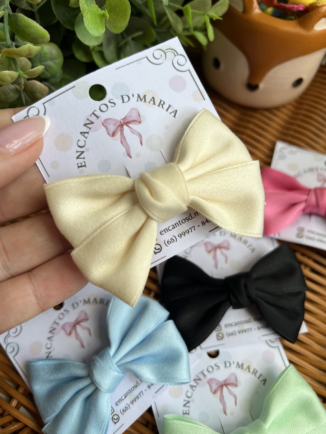 O tamanho médio do laço se adapta perfeitamente a diferentes estilos de cabelo, garantindo um visual encantador e delicado. A fita acetinada proporciona um brilho sutil que complementa as roupas da sua pequena, fazendo com que ela se sinta ainda mais especial.