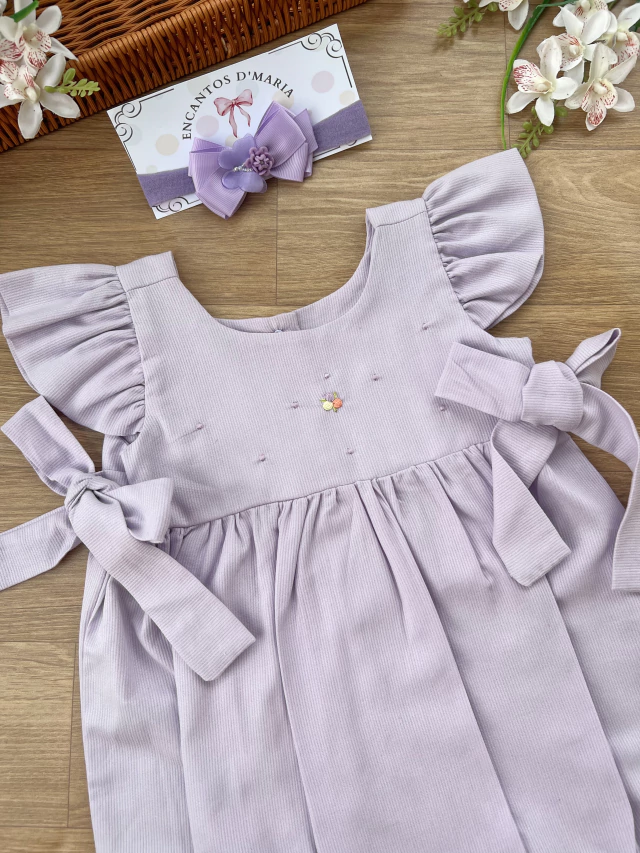 Pimpão manga curta confeccionado no tricoline100% algodão, com gola redonda e bordados manuais. Possui aplicação em lacinhos laterais. Fechado em botões no fundo.