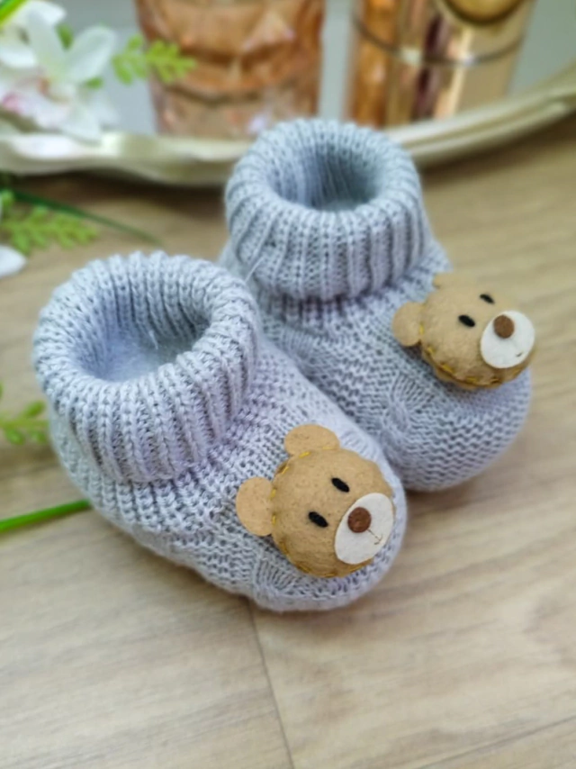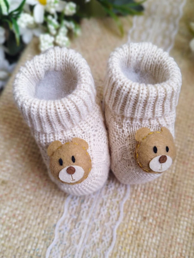 1 Par de Sapatinhos Tricot Acrílico 100% Antialérgico.Tamanho: Único 0-2 meses