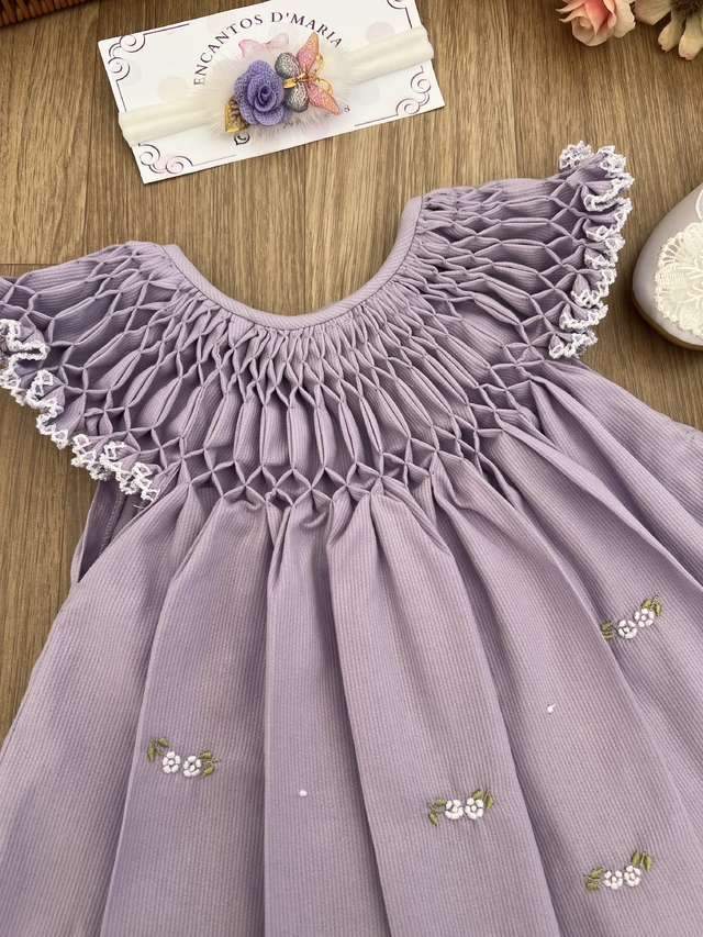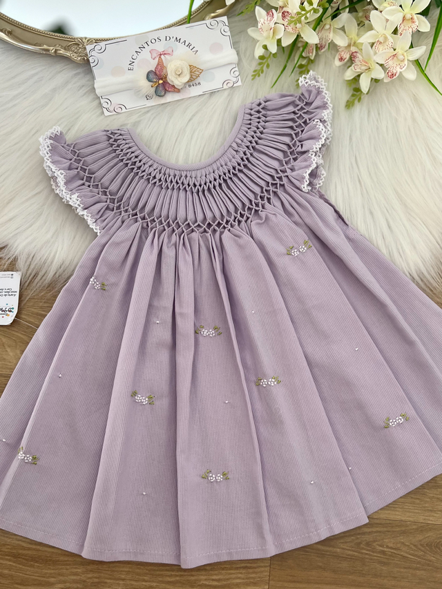 Vestido modelo casinha de abelha confeccionado em fustão 100% algodão com bordados manuais de flores brancos com galhos verde, possui aplicação de biquinho de linha nas mangas. OBS. O busto desse vestido é bem amplo, o modelo da pala é drapeada em pinças proporcionando mais largueza, entao a escolha do tamanho ideal para sua bebê sempre será baseada no à COMPRIMENTO.