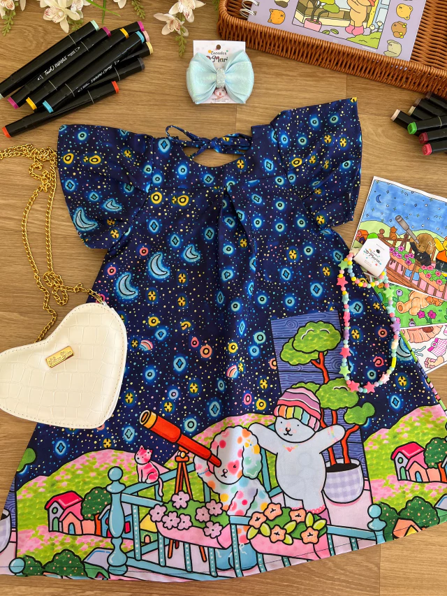 Vestido Infantil De Mangas Com Estampa Lúdica Do Queridinho Bobbie Goods em Crepe