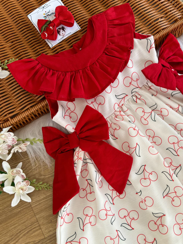 Vestido Drapeado Cereja – Conforto e Estilo para sua Bebê