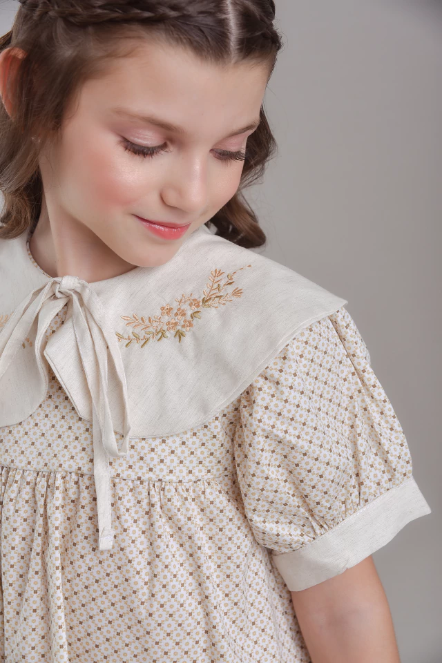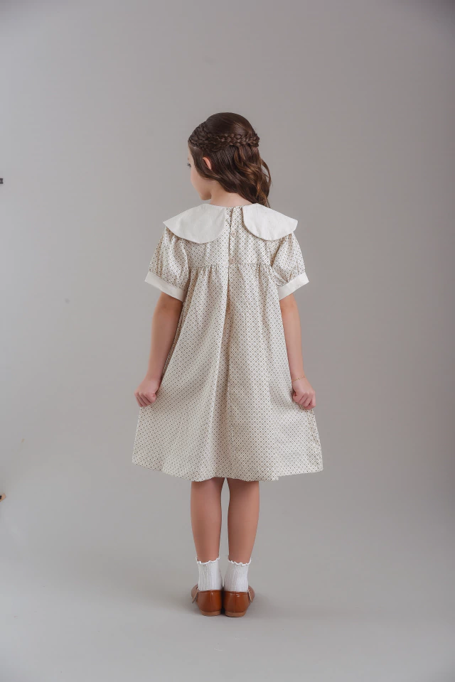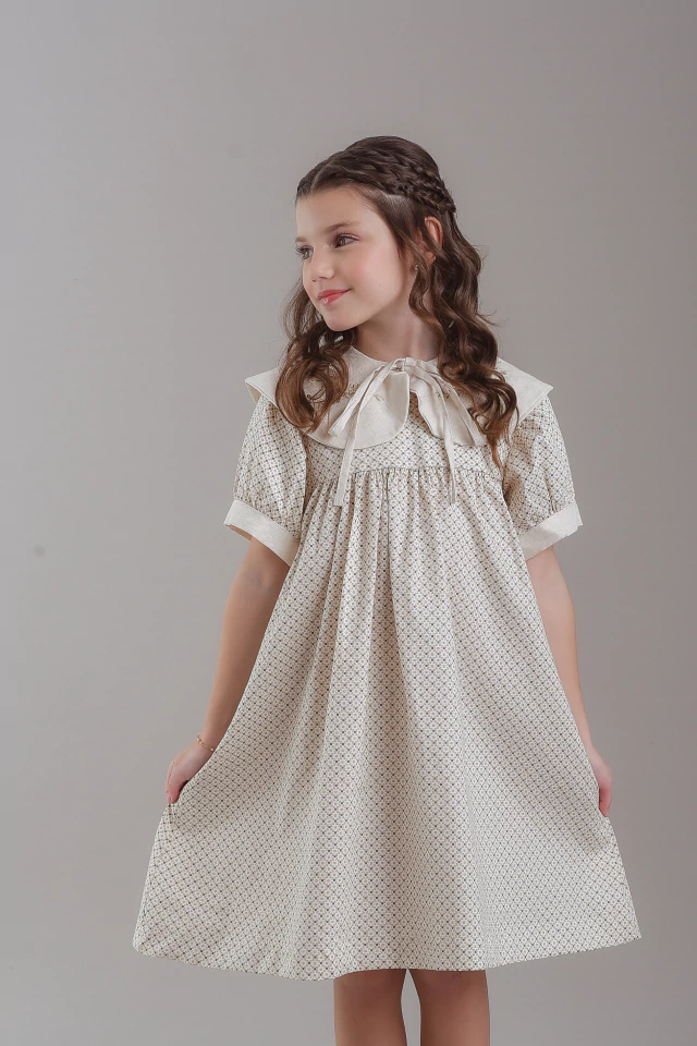 Vestido confeccionado em Tecido 100% Algodão com golinha redonda com sianinha e manguinha bufante.
