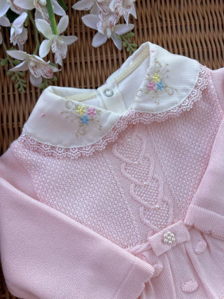 Body De Bebê com Gola Rendada e aplicações de pérolas